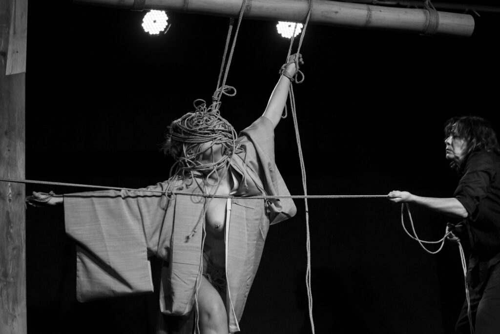 “SHIBARI OR BANANA?, with Juju Kotobuki, Lee Sola, Rija Mae, Afsana Kink, Saara Rei and Jay Diviaren. Eurix X (Berlin). “UNLEASH THIS CHAOS IMMEDIATLEY”, with Micha Stella and floZif in Eurix XI (Berlin). “LOFT”, with Lee Sola at La Estupenda Performing Arts. (Granada). “KEEP CALM AND ROPE TENNIS”, with Micha Stella, floZif, Rija Mae and Naomi Sotorroso at Eurix XII (Berlin). “ROB & ROPE”, with Micha Stella, (designer of rope dollars by Human Chuo). Prague Shibari Festival (Prague). “HIBAKUSHA. Bombed person, with Rosalie Lello Li, dramatic Redding by Micha Stella, music and sound space design by Lorenzo Colocci.. International Short Film Competition Ciudad de Soria. (Soria). “ DÉSACORDÉ. Ropes performance more or less”, whit Alex Mino at La Corderie. (Marseille)… and the film EDÈN, with Nico Presence and Milena Ruzicka and music by Donato Cocca, which is going for its third selection in international short film festivals.