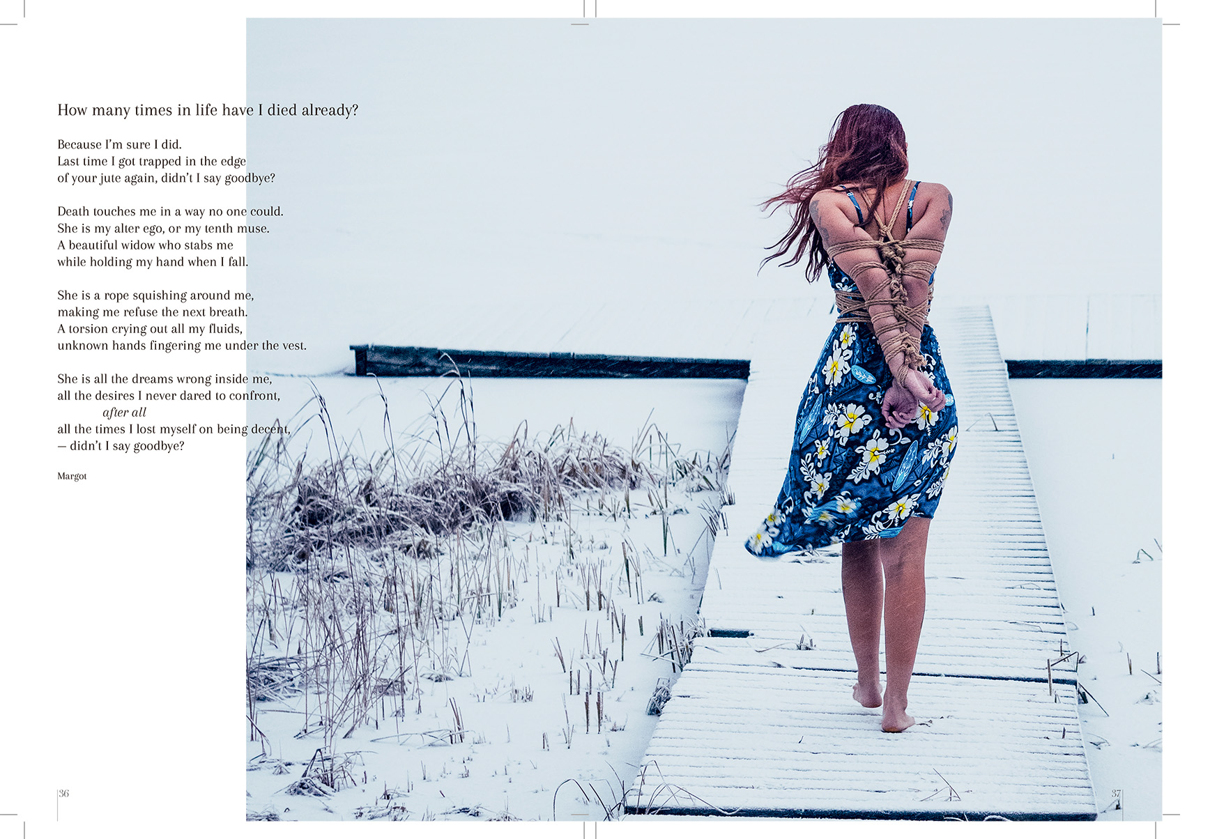 So read on, dear friends and supporters. Enjoy the pictures, the fiction and the poetry and our reflections on Kinbaku… We hope, this little gem will help you to go through the dark months.